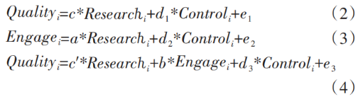 在探讨高校教师科研能力对其教学质量的影响机制时,本研究采用温忠麟等的中介效应检验流程检验三类教学投入的中介效应,建立如下模型: