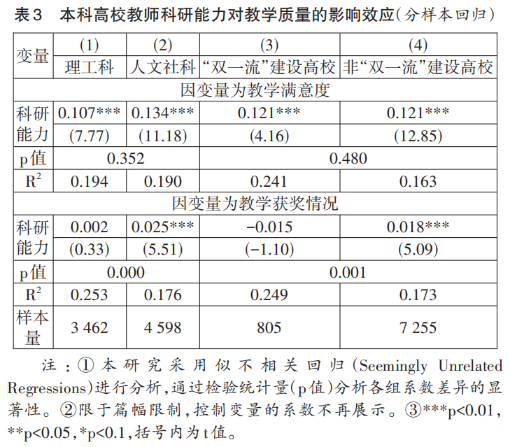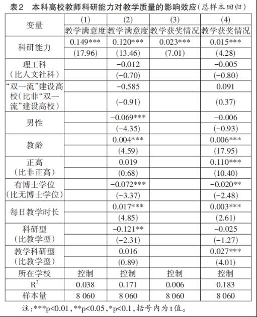 (一)教研相长或教研相斥:科研能力对教学质量的影响效应