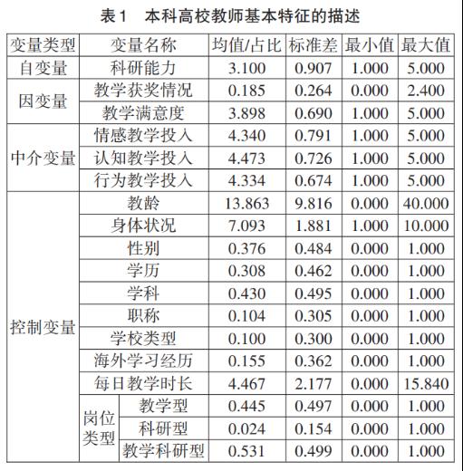 关键词:科研能力;教学质量;教学投入;本科高校教师